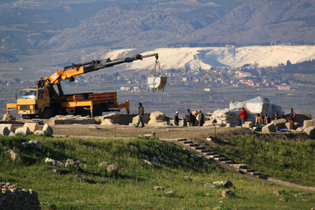 Denizli’ye 5 km uzaklıktaki antik kent, MS. 60 yılında meydana gelen depremle yerle bir olmuş. Tamamı yıkılan bu kent, Denizli Belediye’sinin sürdürdüğü kazılarla yeniden ayağa kalkıyor. Devrilen sütunlar titizlikte restore ediliyor, mozaikler birleştiriliyor, antik kentin yolları yeniden yürünebilir hale getiriliyor. İş makineleri, arkeologlar ve pek çok uzmanın çalıştığı antik kent bir şantiye alanı gibi. Kentin her noktasında çalışmalar büyük bir hızla devam ediyor. Kazılarda bulunan horoz figürleri ise meşhur Denizli horozunun köklerine ışık tutuyor.