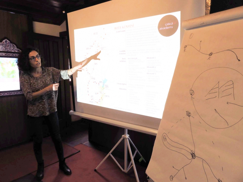 Türkiye’de yeni gelişen bir kavram olarak kültür rotalarının planlama yöntemini geliştirmek, yerele özgü araştırma ve değerlendirme tekniklerinin uygulanmasını sağlamak, yerel yönetimlerin işbirliklerine dayalı bölgesel koruma yaklaşımını kültür rotaları aracılığıyla yaygınlaştırmak ve bu doğrultuda koruma ve planlama çalışmalarından sorumlu kadroların bölgesel özellikler üzerinden kültürel rota çerçevelerini geliştirmelerini sağlamak üzere verilen eğitim, ÇEKÜL Vakfı Kent Çalışmaları Koordinatörü, mimar Alp Arısoy ve şehir plancısı Esra Karataş Büke tarafından sürdürüldü.
