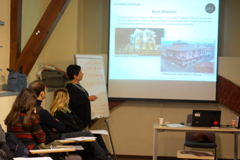 ÇEKÜL Akademi koordinatörü Kibele Eren ve ÇEKÜL Akademi eğitmenleri Nadir Mutluer ve Y. Metin Keskin tarafından verilen “Her Kente Kent Müzesi-I” başlıklı eğitim, “İşlevlendirme ve Kuruluma Yönelik Yaklaşımlar” alt başlığıyla 5-7 Nisan tarihlerinde gerçekleştirildi.