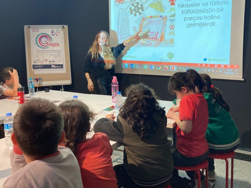 Bilgi Ağacı, bu yılki konsepti “Buluşma Noktası” olarak belirlenen ve 5 bin 391 çocuğa ait sanat eserini biraraya getiren 6. Uluslararası İstanbul Çocuk ve Gençlik Bienalinde “Motiflerdeki Doğa” atölyesini düzenledi. Çocuklar ve gençlerin iklim krizi, teknoloji ve internetle ilişki, pandemi gibi temalar ekseninde ne tür sorunlarla karşılaştıkları ve bu sorunlara nasıl tepkiler verdiklerini araştıran bienal kapsamında Tevfik Fikret İlkokulundan 20 öğrenciyle biraraya geldi. Motiflerdeki Doğa atölyesi atölyesi ile öğrenciler doğada bulunan canlıları ve bu canlıların kültür üzerindeki etkilerini halı, kilim, heybe gibi el sanatları ürünleri üzerinden inceleyerek doğa, kültür ve insan arasındaki bütüncül ilişkiyi keşfettiler; önem verdikleri duygu, fikir ve olayları doğadan ilham alarak motiflerle nasıl sembolize edebilecekleri üzerine düşündüler. Atölye, öğrencilerin tasarladıkları motiflerin hikâyelerini arkadaşlarıyla paylaşmasıyla son buldu.