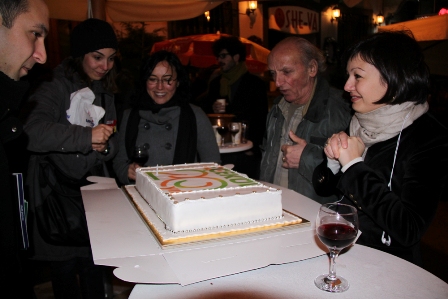 Sokak partisinde 20.yıl pastası kesilirken