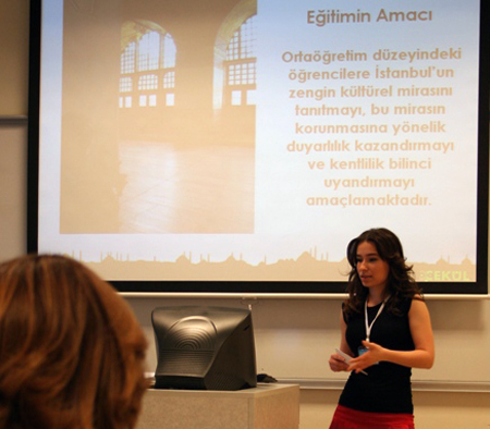ÇEKÜL Vakfı’nın Kültürel Miras Eğitimleri kapsamında, iki yıldır Darüşşafaka Eğitim Kurumları ile yürütülen “Yapıların Diliyle İstanbul” eğitimi, konferans katılımcılarıyla paylaşıldı. ÇEKÜL Vakfı Eğitim Birimi eğitmenlerinden Seval Aydın yaptığı sunumda, eğitimin lise düzeyindeki öğrencilere İstanbul’un zengin kültürel mirasını tanıtmayı, bu mirasın korunmasına yönelik duyarlılık kazandırmayı ve kentlilik bilinci uyandırmayı amaçlamakta olduğunu vurguladı.