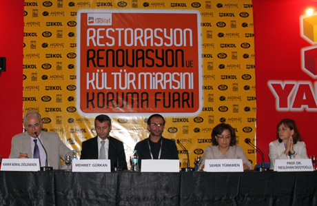 Kimi zaman yüz yıllık ahşap evler, kimi zaman 600 yıllık taş kervansaraylar Anadolu ustalarının emekleri, bilgi ve tecrübeleriyle restore ediliyor; aslına uygun yapılan taş, kerpiç, bakır, ahşap uygulamalarıyla geleceğe taşınıyor. Usta-çırak ilişkisiyle günümüze ulaşan bu zengin kültürün örnekleri koruma fuarındaki “Restorasyon Köyü”nde bir araya geldi. Antep, Kastamonu, Mardin, Konya gibi kentlerden gelen ustalar uygulamalı olarak zanaatlarını sergiledi.