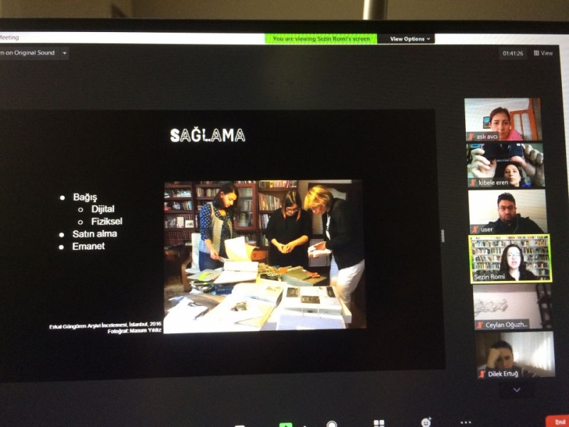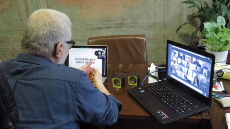 Hayatın her alanını doğrudan etkileyen pandemi koşullarının müze ve müzecilik çalışmalarına yansıması da doğal olarak kaçınılmaz. İkinci modülün ilk sunumunu yapan Doç. Dr. Nevra Ertürk, konuşmasına, pandemi koşullarında müzecilik üzerine kısa bir girişle başladı. Müzecilikte 20. yüzyılda başlayan dijitalleşmenin pandeminin etkisiyle hızlandığını ancak dijitalleşmenin her yerde eşit şekilde olmadığını vurgulayan Ertürk, özellikle küçük ölçekli müzelerin önümüzdeki yıllarda kapanma tehlikesi altında olduğunu belirtti. Bir müzenin çekirdeğinin onun koleksiyonu olduğuna vurgu yapan Nevra Ertürk, ziyaretçi ve personel unsurlarının bu üçlü çark dişlisini tamamladığını, dört duvardan oluşan “bina” unsurununsa günümüz müzecilik tanımında şart olmadığını ve pek çok alanın müze olarak tanımlanabileceğini söyledi. Ertürk, katılımcılarla birlikte İstanbul'da olası bir kent müzesinin küratöryal çalışma çatısı altında nasıl değerlendirilebileceğini, oluşturulacak koleksiyonun neleri içermesi ve nasıl geliştirileceğine dair tartışma ortamı da oluşturdu. Bu bağlamda bir kent müzesinin mekân ve nesnenin ötesinde kentin duyusal (ses, koku, doku, görsel ve tat) olarak ne gibi deneyimler yaşattığı ve kentli olmanın ne demek olduğunun pek çok araçlarla yansıtıldığı; geçmiş, şimdi ve geleceğin de konuşulup tartışıldığı mekânlar olması gerektiğine vurgu yaptı. Koleksiyonun bilinmeden bina tasarımının da olamayacağını söyleyen Ertürk, koruma, araştırma ve iletişim alt başlıklarının koleksiyon üzerinden yapılacağının altını çizdi; müze koleksiyonunun somut ve somut olmayan unsurları kapsayabileceğini hatırlattı; hikâyelerin koleksiyon oluşturma ve geliştirmedeki rolünden söz etti.
