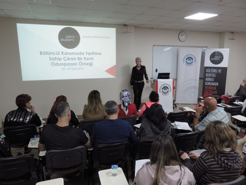 ÇEKÜL Akademi Alanda Eğitimler sonbahar programı Odunpazarı ile başladı. “Bütüncül Korumada Tarihine Sahip Çıkan Kent: Odunpazarı Örneği” başlıklı eğitime 12 belediyenin KUDEB, fen işleri, kent tarihi ve tanıtım, imar ve şehircilik, proje birimlerinden 21 uzman katıldı.