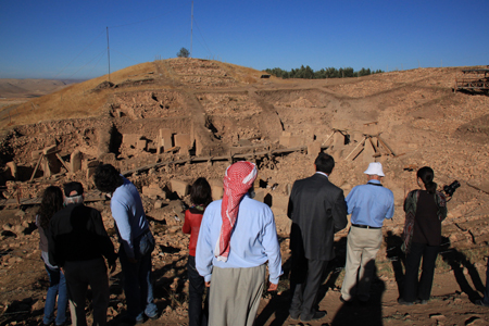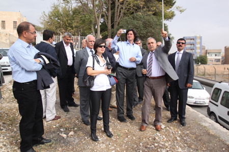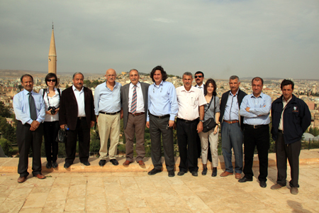 Urfa’nın gelecek hedeflerinin tartışılacağı çalıştay öncesi 21 Ekim sabahı, kent gezisi yapıldı. Belediye Başkanı Fakıbaba ve ekibi, çehresi değişmeye başlayan Urfa’yı ÇEKÜL Heyeti’ne detaylarıyla anlattı. Biten projeleri, yeni başlayan çalışmaları ve henüz sadece hayallerde olanları yerinde, adım adım gezilen sokaklarda büyük bir heyecanla anlatı. Kentin kurulduğu ve büyümeye başladığı ilk noktalardan biri olan Samsat meydanı, Karakoyun deresi üzerindeki dört tarihi köprü, Fırfırlı Kilise (cami), Haleplibahçe, Harran Kapı gezilerek, kale eteklerinde yapılan istimlak ve düzenleme çalışmaları incelendi. Tarihi dokuyu birbirine bağlayan üç ana aks üzerindeki sokaklarda yapılan çalışmalar görüldü. Dünya’nın gözlerinin üzerine çevrildiği Göbeklitepe gezisi ise, kentte yapılması gereken bütüncül korumanın kilit noktasıydı.