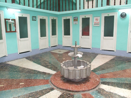 Tarihi hamam, geçirmiş olduğu onarımlar sonrasında günümüzde “Merkez Banyo ” ismi ile hizmet veriyor. Özgün giriş bölümünün kapatıldığı hamamın, günümüzdeki ön cephesi de diğer yapılardan dolayı algılanamaz durumda. Haçvari planlı, dört eyvanlı ve köşe hücreli plana sahip olan tarihi hamam, geçirdiği onarımlar, eklemeler ve bölmelerle plan üzerinde de değişikliğe maruz kalmış.