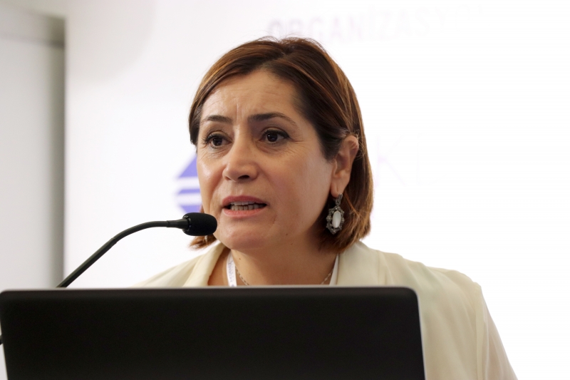 Özgül Öztürk, konuşmasında Elazığ’da uygulamaya geçirdikleri ve Kadın Kooperatifi olarak kullanıma açılan projenin ayrıntılarıyla devam etti. 2007 yılında başlayan ve iki yıl önce tamamlanan proje, 6 sürdürülebilir kalkınma amacını karşılıyor. Bölgenin yerel malzemesiyle uygulanmış, yereldeki kadınların üretimini teşvik etmeye odaklanmış proje, kentteki yerel mimarinin bugünün kullanıcısına uyarlandığı mimari anlayışla da dikkat çekiyor. Kentlinin geçmişiyle bağlantı kurabildiği yeşil çatılı yapı, yağmur suyunu da depoluyor. Öztürk, yapının iç ve dış mekân görüntülerini paylaşırken, aile köklerinin de bulunduğu kent kültürünün izlerini aktardı; farklı mevsimlerde çekilmiş fotoğraflarla, çevreyle uyumlu mimari detayları paylaştı.