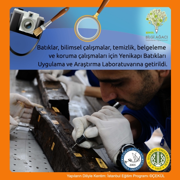 Batıklar, İstanbul Üniversitesi ekibi tarafından özel yöntemlerle araziden kaldırılarak, Yenikapı Batıkları Uygulama ve Araştırma Laboratuvarına getirildi. Bilimsel çalışmalar, temizlik, belgeleme ve koruma çalışmaları, İstanbul Arkeoloji Müzeleri Müdürlüğü başkanlığında ve İstanbul Üniversitesi Sualtı Kültür Kalıntılarını Koruma Anabilim Dalı Başkanı Prof. Dr. Ufuk Kocabaş’ın proje direktörlüğünde, İstanbul Üniversitesi Sualtı Kültür Kalıntılarını Koruma Anabilim Dalı öğretim üyeleri, araştırma görevlileri, lisans ve lisansüstü öğrencilerinden oluşan bir ekiple yürütülüyor.