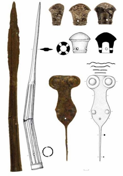 Hem tholos hem de pithos mezarlarında zengin mezar eşyaları bulunmuştur. Yerel ve ithal kaplar, scarebeler, mühürler, metal eserler, cam ve fayanstan süs eşyaları başlıca buluntulardır. Bronzdan yapılmış eserler arasında levha biçimli bir iğne üniktir ve en yakın paraleli Kafkaslar’da bulunmaktadır(12).
