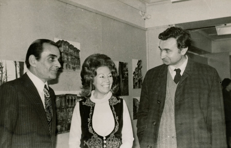 Perihan Balcı, eşi Muzaffer Balcı ve Prof. Dr. Doğan Kuban ile Şehir Galerisi Sergisinde, 1972