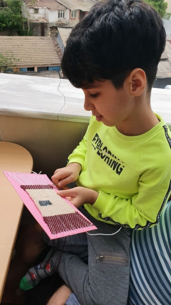 Öğrenciler “Motiflerdeki Doğa” etkinliğimiz için minik gergilerde kilim dokudu. Dokuma süreci çok keyifliydi. İçinde bulunduğumuz salgın dönemi etkinlikler için fiziksel buluşmaları, gezileri ne yazık ki engelledi. Buna rağmen çevrimiçi ortamda buluşarak bir konu ile ilgili fikir alışverişinde bulunmak bana ve öğrencilerime farklı bir bakış açısı kazandırdı. Bu buluşmaların olumlu özelliklerinden bir diğeri ailelerin çocukları ile birlikte, sürece ortak olmalarıydı. Biz sınıf olarak çok büyük keyif aldık. Her fırsatta bahsettiğim bir program.