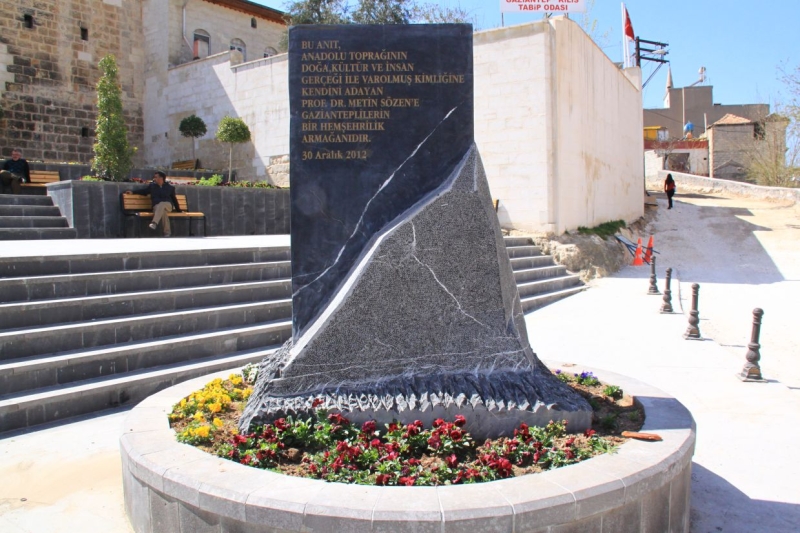 Gaziantep Mahallesindeki Metin Sözen Eğitim ve Kültür Merkezinin önündeki meydana yerleştirilen anıt