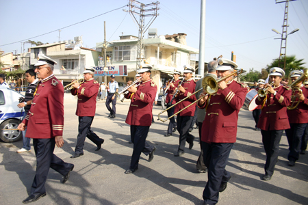 Belediye'nin emektar bondo takımı, çaldığı marşlarla yürüyüşe canlılık getirdi.