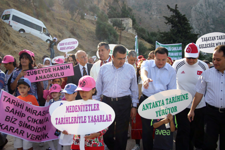 Özellikle öğrencilerin yüksek sesle haykırdıkları “Antakya Kültürüne Sahip Çıkıyor” sloganı ve engellilerin açtığı “Engelli oluşumuz, kültürel mirasımıza sahip çıkmaya engel değil” pankartı esnafın ve evlerinin camından, balkonundan yürüyüşü izleyenlerin de alkışlarla bu coşkuya katılmalarını sağladı.