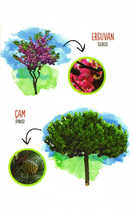 Kitabın “Ağaçlar Nasıl Görünüyor?” başlıklı son bölümünde illüstrasyon dışında ağaçların fotoğraflarına ve bilgilerine de yer veriliyor.