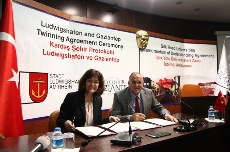 Törenlerde, Gaziantep’te birçok uluslararası toplantıya ev sahipliği yaptıklarını aktaran Güzelbey, Kore, Çin, Çeçenistan, Almanya gibi ülkelerden gelen temsilcilerle ayrı bir heyecan yaşadıklarını ifade etti. Programın ilk bölümünde Dr. Asım Güzelbey ile Almanya’nın Ludwigshafen Belediye Başkanı Dr. Eva Lohse arasında “Kardeş Şehir” protokolü yapıldı.